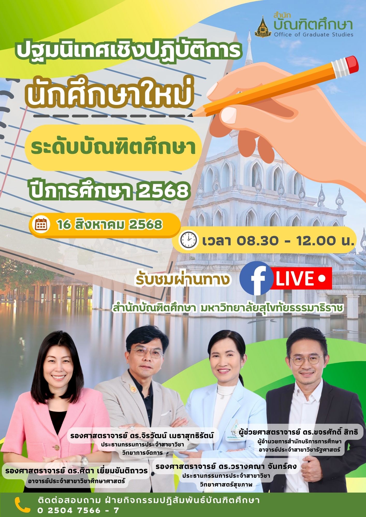 ปฐมนิเทศเชิงปฏิบัติการนักศึกษาใหม่ ระดับบัณฑิตศึกษา ปีการศึกษา 2568วันที่ 16 สิงหาคม 2568